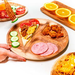 Serve snacks, appetizers, and dips in style with this beautifully handcrafted acacia wood plate. Each piece is made from solid acacia, known for its natural strength and rich wood grain. With a smooth, food-safe finish and durable build, this plate is perfect for serving hot or cold foods while adding an elegant, organic touch to your dining setup.