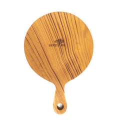 MULTI-PURPOSE DESIGN WITH EASY GRIP HANDLE: The handle offers a comfortable, secure grip for serving or carrying. Finished with a food-safe natural oil, the board resists water and heat, making it ideal for hot or cold foods. A hanging hole at the end of the handle allows easy storage and display.