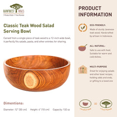 1 × Classic teak wood serving bowl (12 in / 3900 ml)
