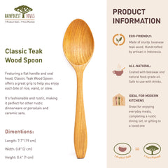 Handcrafted from Natural Teak Wood: Each spoon is individually carved for a unique natural grain pattern.
