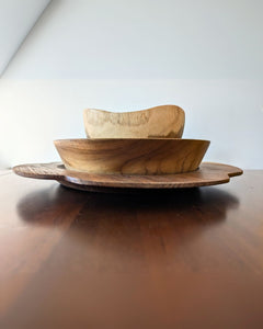 This handcrafted teak wood plate features a floral-inspired design that combines natural beauty with everyday functionality. Its smooth surface and durable build make it suitable for serving salads, sliced fruits, bread, cheeses, tapas, and desserts. The natural wood grain ensures every piece is unique, adding a warm, rustic touch to your table setting.