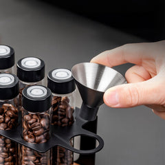 This coffee storage tube system is designed to help preserve freshness and flavor by combining airtight sealing with one-way valve technology. Built from high-quality glass, each tube maintains beans in optimal condition by allowing natural degassing while blocking oxygen exposure. With features such as a built-in funnel for easy filling and individual portioning for convenience, this system provides a practical and stylish way to keep your coffee beans ready for brewing.