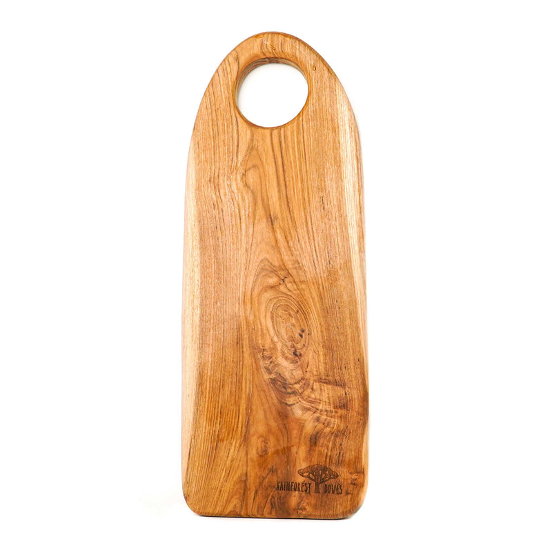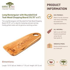 Rounded Edge Rectangular Teak Wood Chopping Board (16" x 6") with Handle