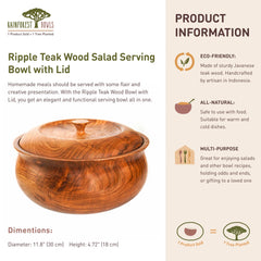 Ripple Teak Wood Salad Serving Bowl