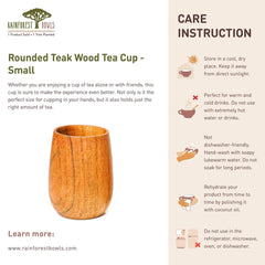This small rounded cup is handcrafted from solid teak wood, offering a natural and timeless way to enjoy your drinks. Designed with smooth edges and a polished food-safe finish, it is durable, water-resistant, and suitable for daily use.