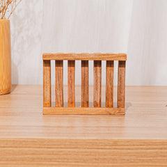This slotted teak wood soap dish is handcrafted from solid Javanese teak, designed with drainage slots that help keep soap dry and extend its use. Its durable build and natural finish make it a practical and elegant addition to bathrooms, kitchens, or wash areas.
