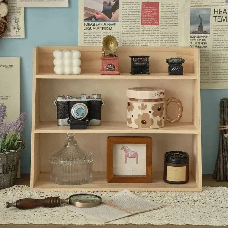 Keep your essentials neat and stylish with this solid wood cosmetics storage rack. Designed with multiple layers, it offers plenty of space to organize skincare, makeup, cups, or small sundries. The natural wood finish adds a retro touch, blending easily with bedroom, bathroom, or office décor.