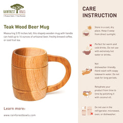 Enjoy your favorite hot or cold drinks in this handcrafted teak wood mug. Each mug is carved from solid teak, a hardwood known for its strength, durability, and beautiful grain patterns. With a smooth food-safe finish, this cup is practical for everyday use while bringing natural elegance to your kitchen or dining table.