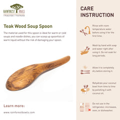 UNIQUE STYLE, HANDCRAFTED BY ARTISANS: This teak wood soup spoon is meticulously hand-carved from premium Javanese teak wood by skilled Indonesian artisans. Each piece features smooth contours and the natural beauty of the wood grain, combining craftsmanship with everyday functionality.