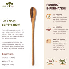 SUITABLE FOR HOT AND COLD BEVERAGES: Finished with a food-safe natural oil, this teak spoon is ideal for both hot drinks like coffee or tea and cold beverages like iced lattes or cocktails.