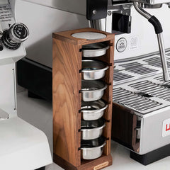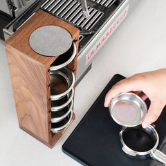 Keep your espresso tools organized and stylishly displayed with this Wooden Espresso Basket Storage Rack. Designed to hold 58mm coffee baskets, it provides a compact and elegant storage solution for both home baristas and professional setups. The precision-crafted wooden frame not only enhances the look of your coffee station but also doubles as a drying and display rack, combining functionality with sophistication.